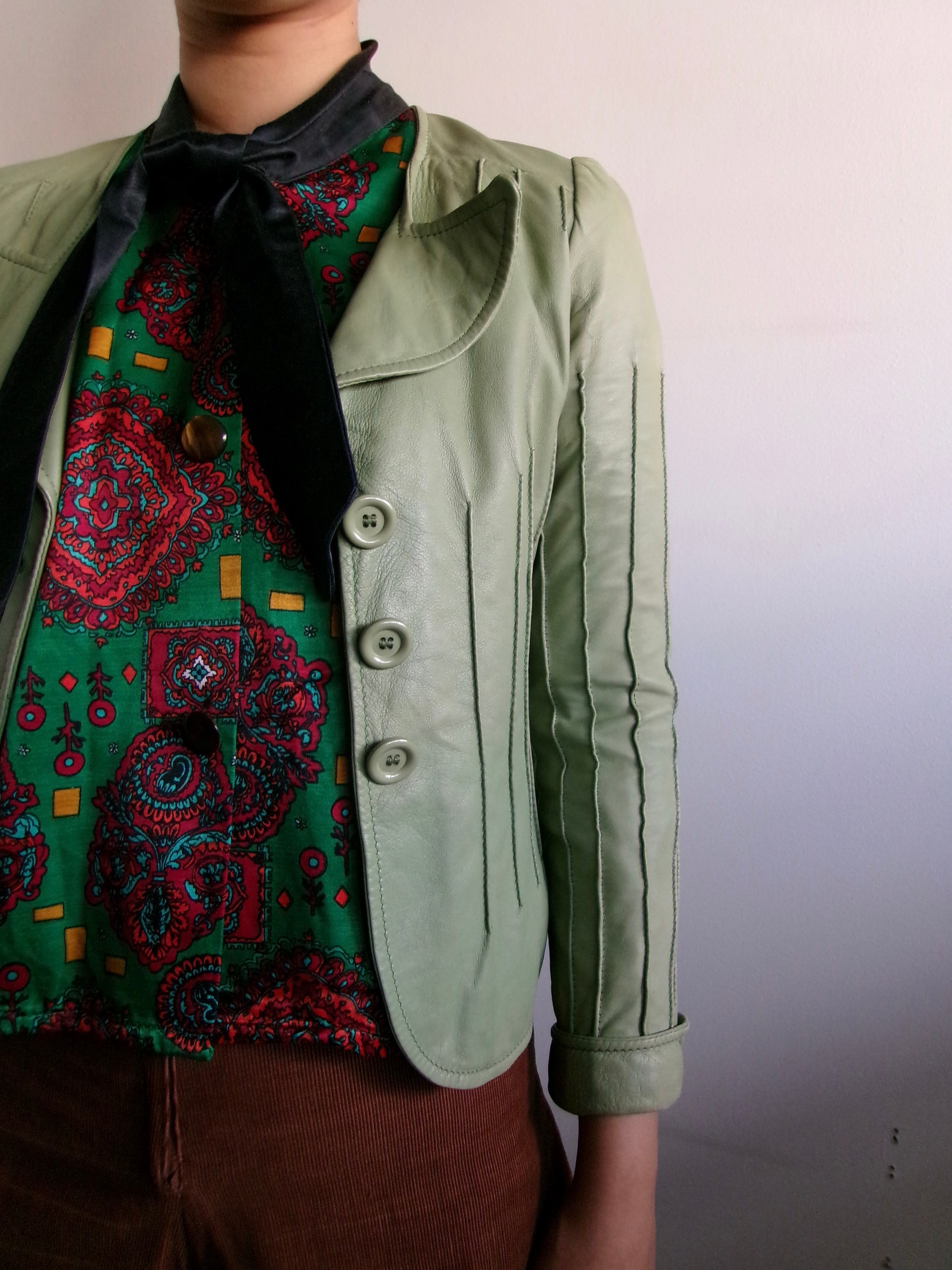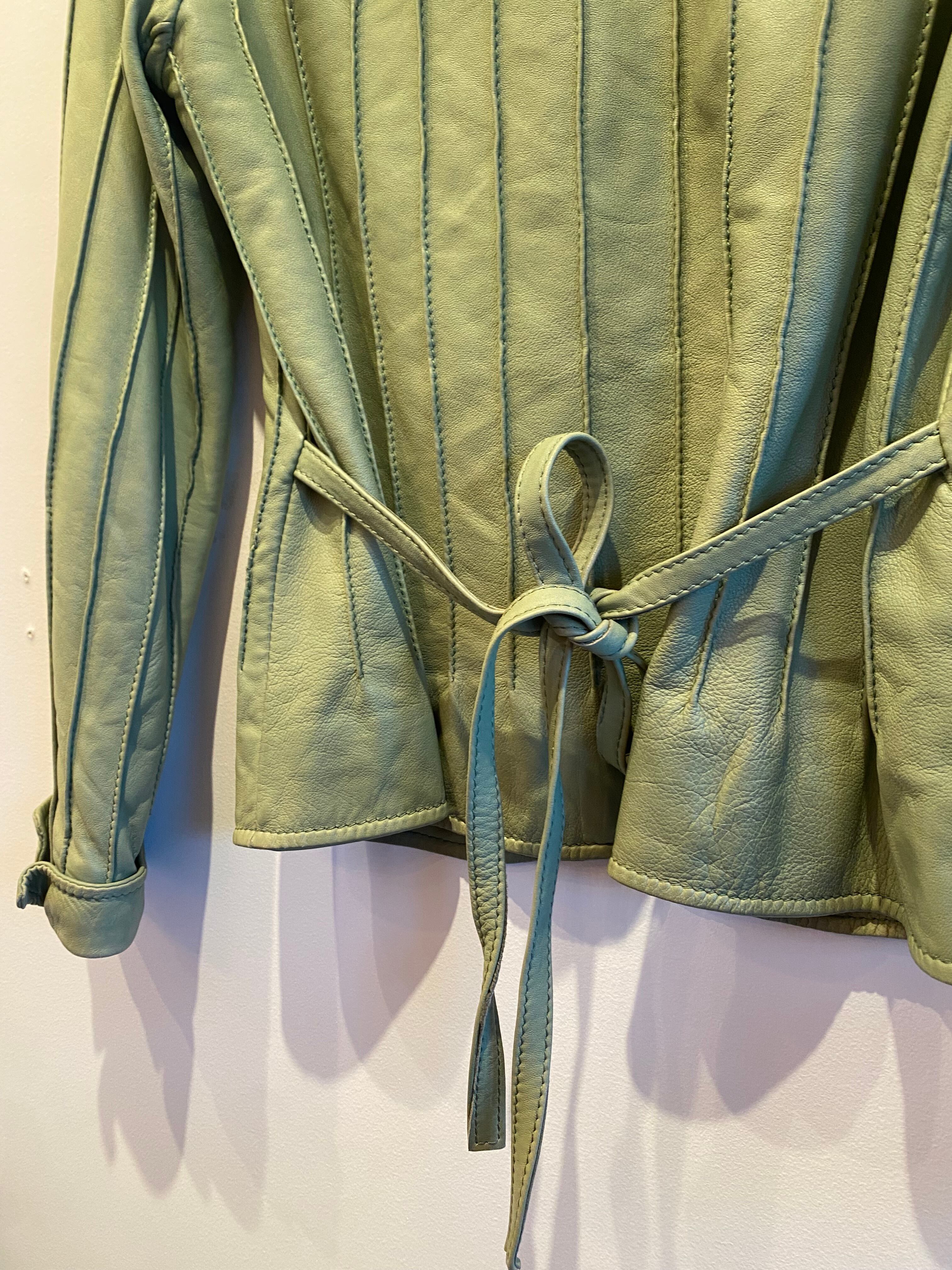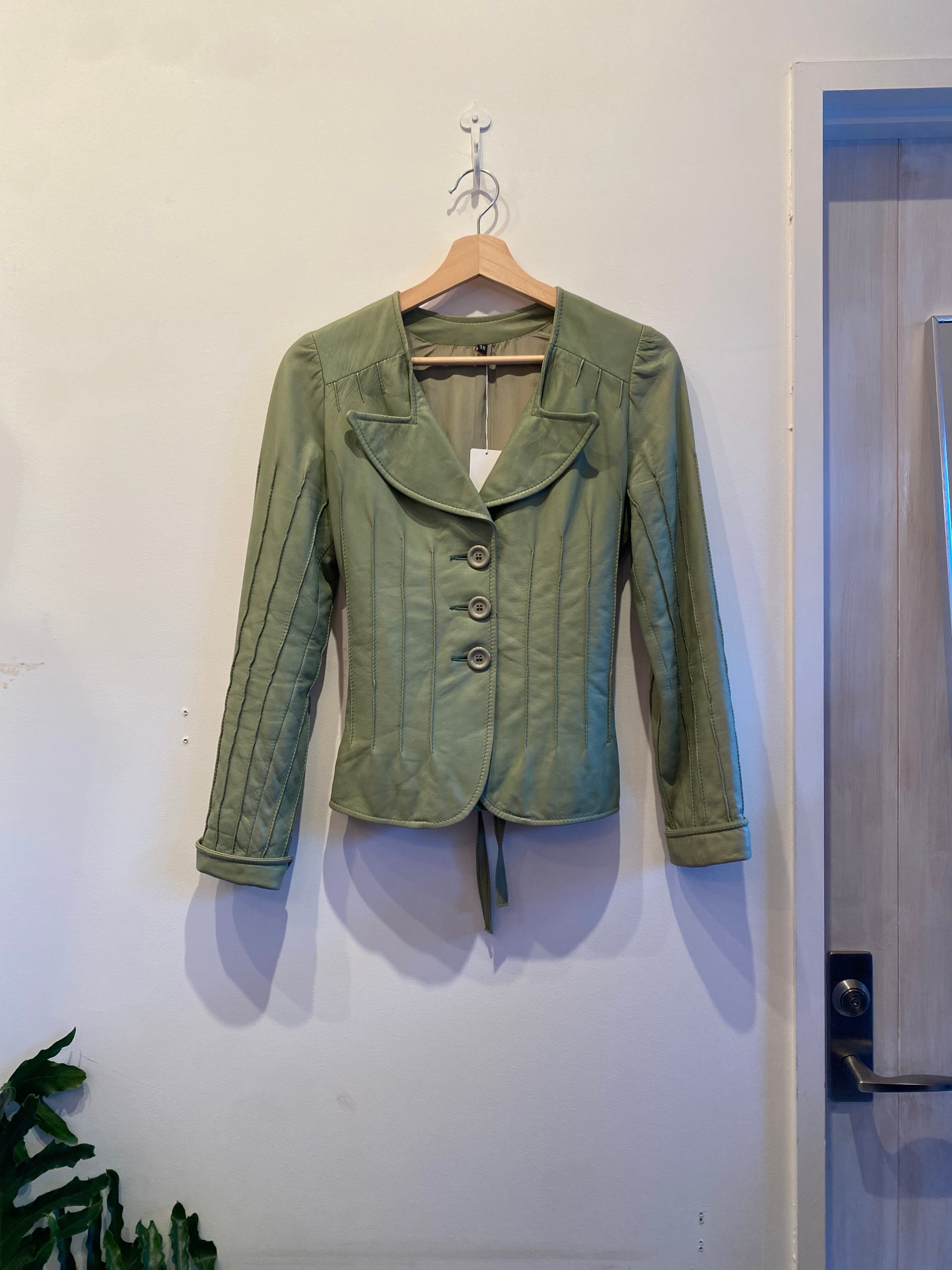 ペールグリーンのコンパクトなレザージャケット。