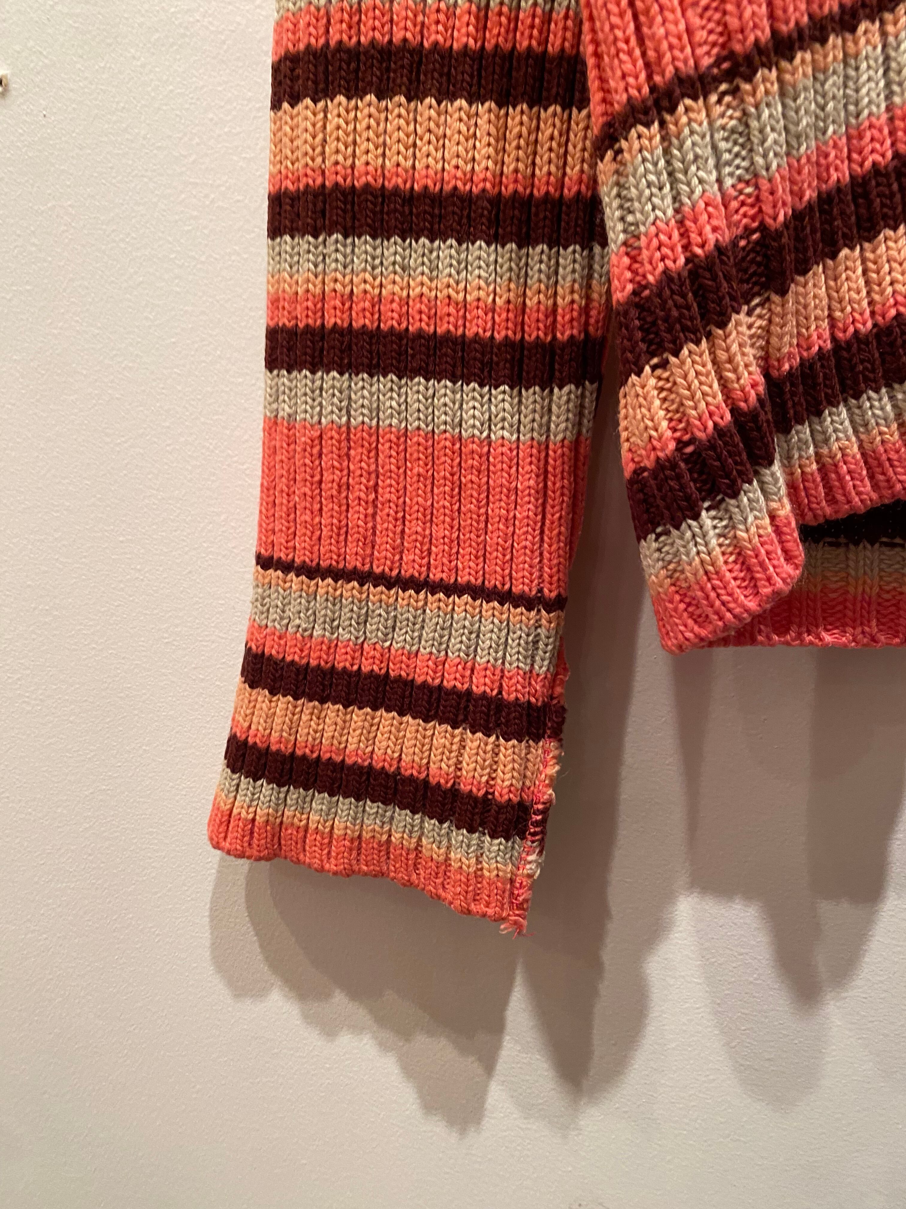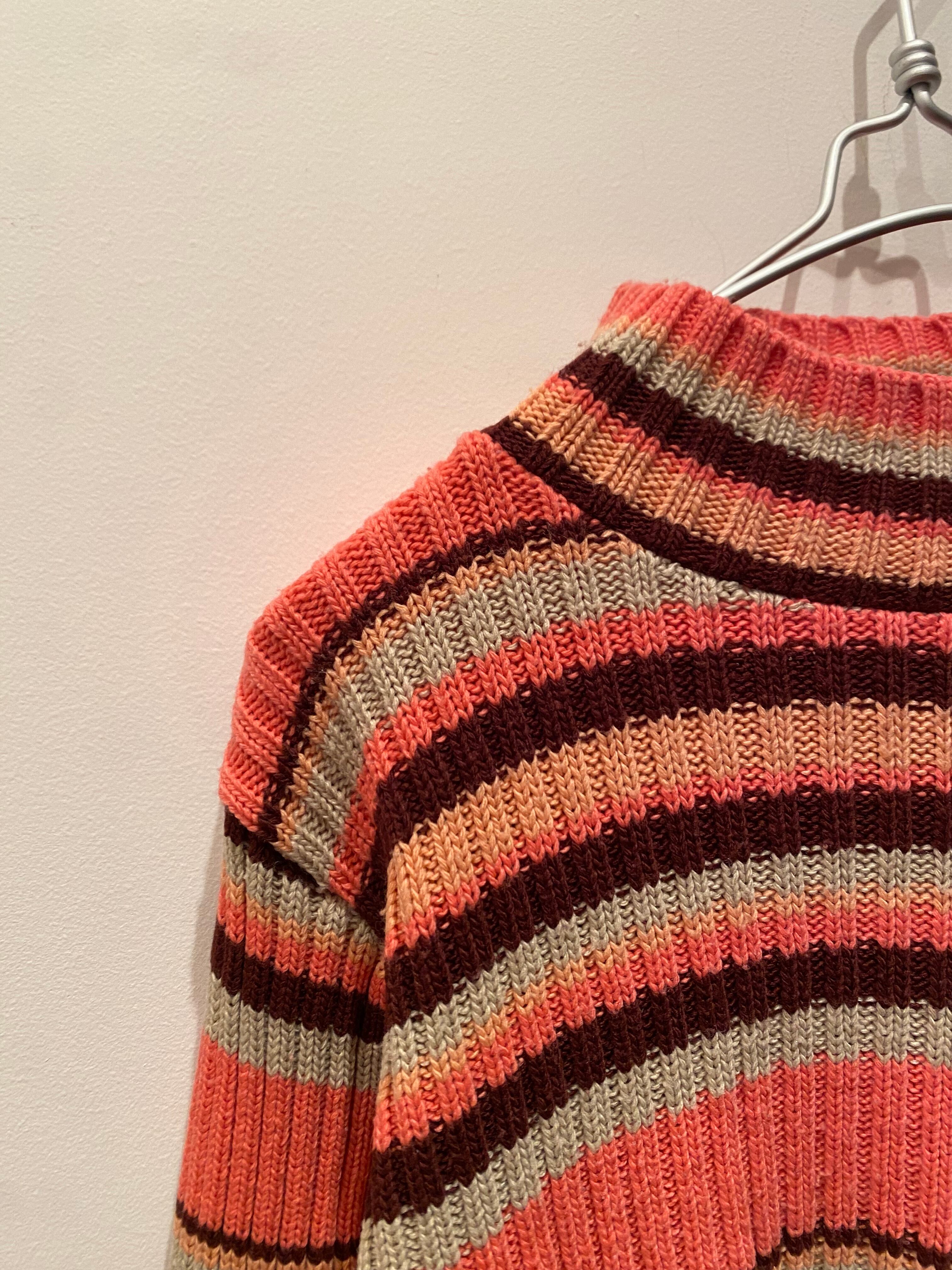 Border design turtleneck knit top